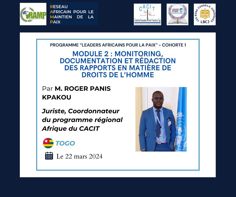 Nous sommes heureux de vous présenter le deuxième conférencier qui interviendra sur le module suivant: MONITORING, DOCUMENTATION ET RÉDACTION DES RAPPORTS EN MATIÈRE DE DROITS DE L’HOMME.
